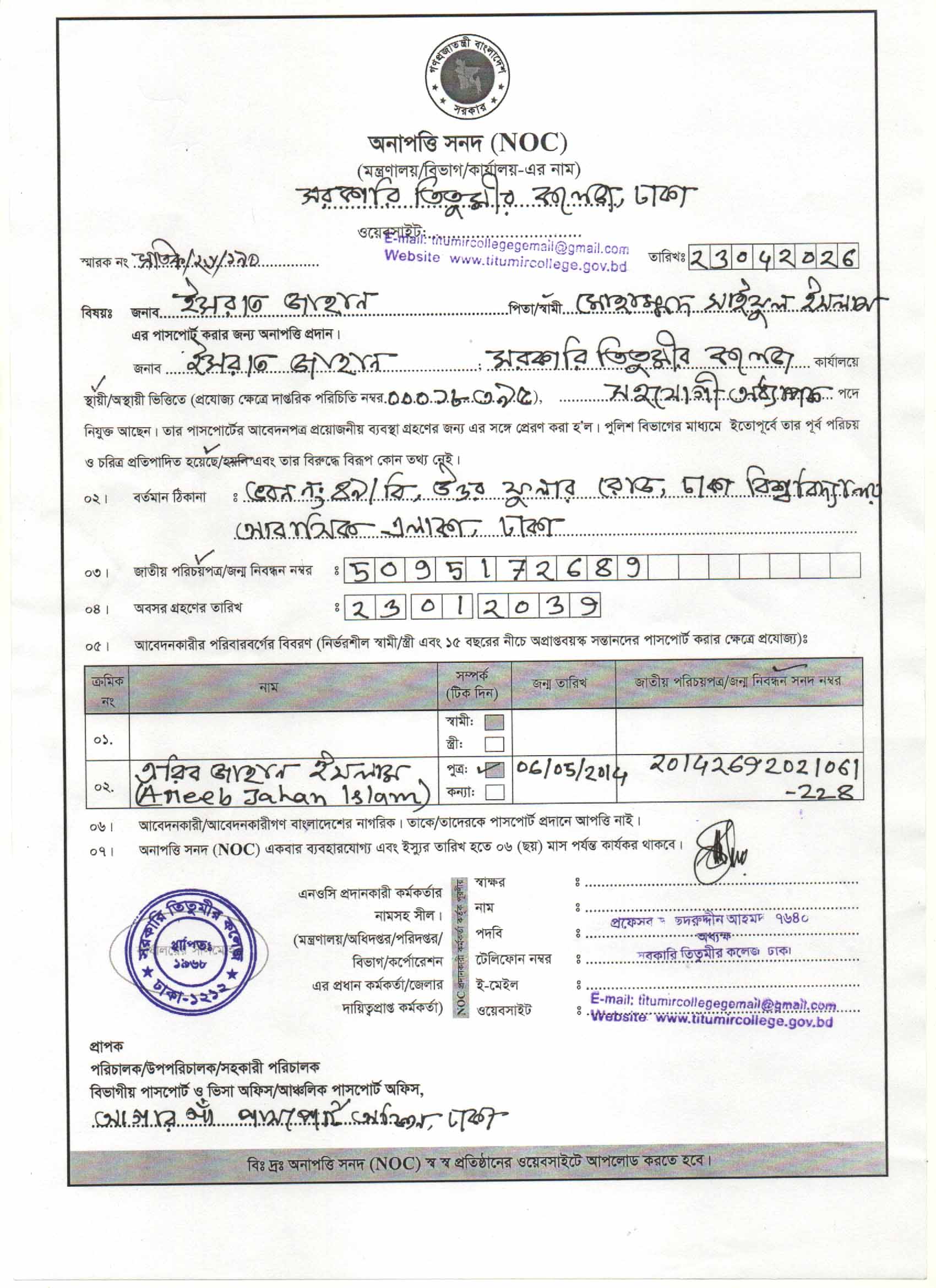 NOC জনাব ইশরাত জাহান, সহযোগী অধ্যাপক, ইসলামের ইতিহাস ও সংস্কৃতি বিভাগ, সরকারি তিতুমীর কলেজ, ঢাকা।